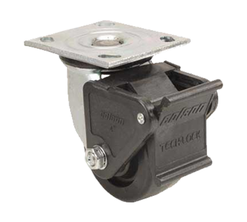 Caster, 4" OD, plate, swivel, with brake, 1500 lb. capacity per (4) casters, polyurethane wheel and hub