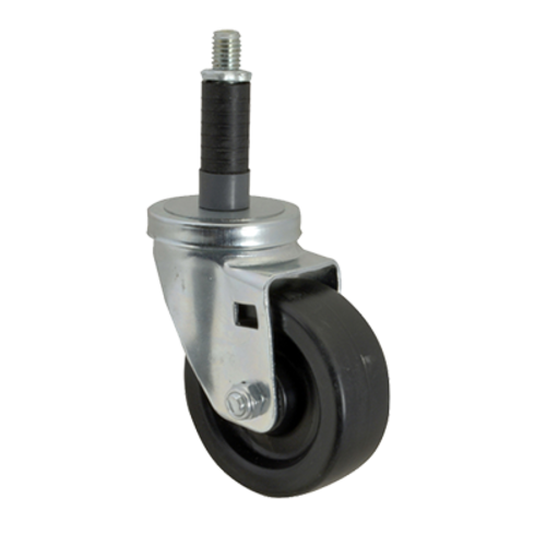 Caster, swivel stem, medium duty, 1-1/4"W, 3-1/2" dia., delrin Bearing, for 1" OD tubing, black rubber wheel with plastic hub