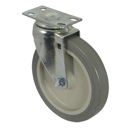 Caster, swivel plate, standard duty, 5" dia., metal wheel with gray rubber tire