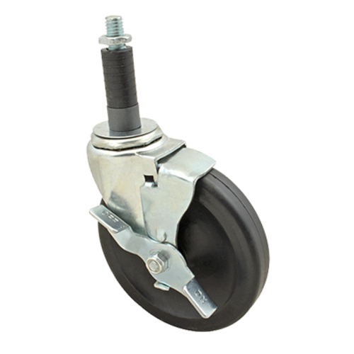 Caster, 5", swivel with brake, stem, for 1" OD tubing, 230 lb. capacity, polyolefin wheel