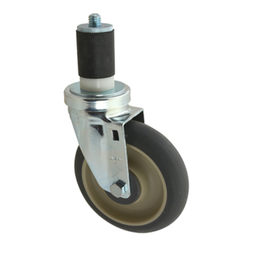 Caster, swivel stem, medium duty, 1-1/4"W, 5" dia., Ball Bearing, swivel, for 1-1/4" pipe without brake, non-marking gray rubber wheel with plastic hub