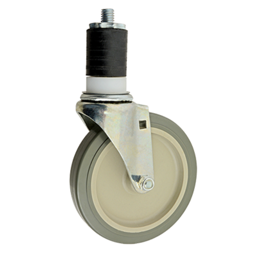 Caster, swivel stem, standard duty, 15/16"W, 5" dia., Ball Bearing, swivel, for 1-5/8" OD tubing without brake, gray polyurethane wheel