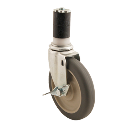 Caster, swivel stem, 5" dia., Ball Bearing, for 1-1/2" OD tubing, plastic hub and gray polyurethane tire, includes brake