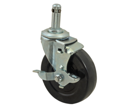 Caster, 3", swivel with brake, grip ring stem, 110 lb. capacity, rubber wheel