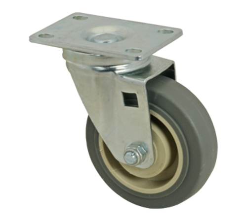 Caster, swivel plate, medium duty, 4", non-marking gray rubber wheel with black plastic hub