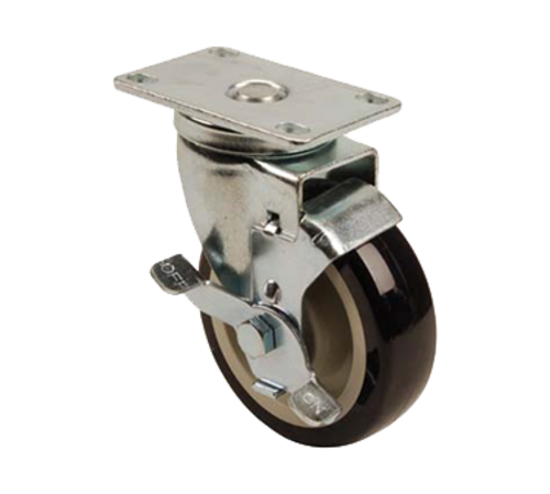 Caster, swivel plate with brake, 1-1/4"W, 4" dia., blue polyurethane wheel with a plastic hub (for mobile meat freezer models M1379, M11628 and M12885)
