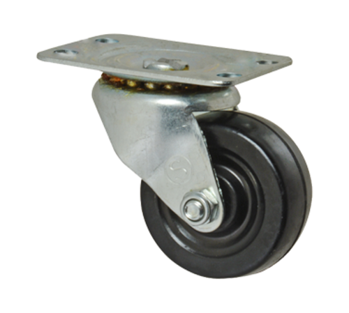 Caster, swivel plate, 2" wheel dia., black polyolefin wheel & hub