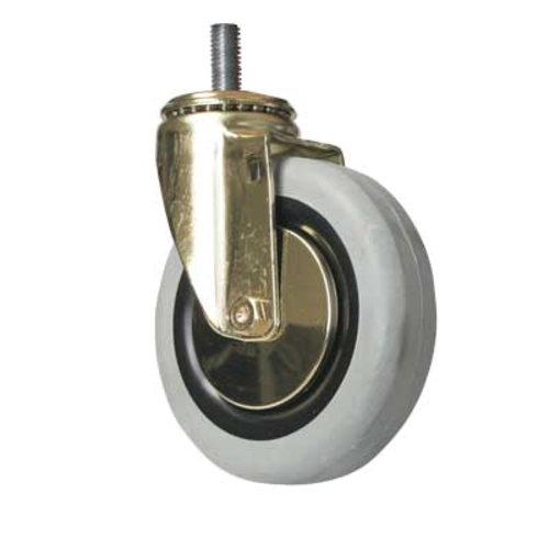 Replacement Caster, 5" dia., grey non-marking wheel (#6050-W), brass plated, swivel stem, threadguards