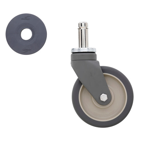 Super Erecta® Stem Caster, swivel, 5" dia., 1-1/4" face, 300 lb. capacity, corrosion resistant, polyurethane flat wheel tread, polymer horn, includes bumper