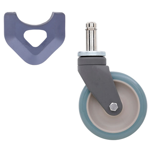 Polymer Stem Caster, swivel, 5" dia., 1-1/4"W face, -20° F to 120°F temperature range, polyurethane wheel tread, 300 lb. capacity, Microban® antimicrobial product protection, NSF (donut bumpers included) (for use with all MetroMax posts & shelves)