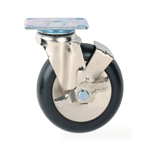 Super Erecta® Dolly Plate Caster, brake, 5" dia., 1-3/8"W face, with donut bumpers, 225 lb. capacity (foot operated brake)