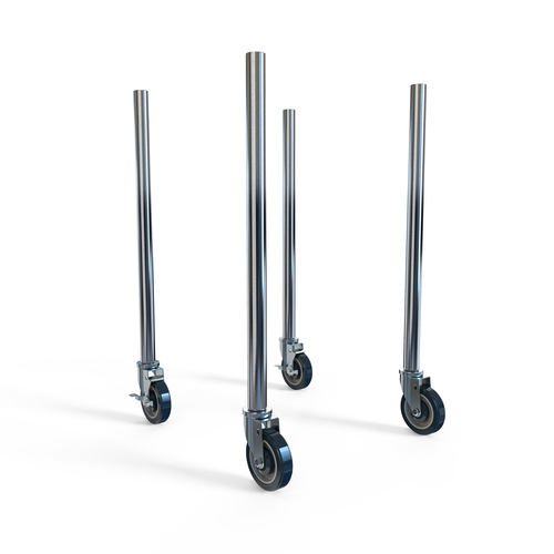 Casters, 5” dia., set of (4), (2) with brakes, with stainless steel legs for standard table height of 35 ½” (contact factory for NET pricing information)