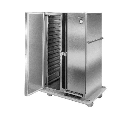 Heated Cabinet, mobile, 2 doors, insulated, removable bottom mounted forced-air heating system, removable slides for (33) 12"x 20" pans, slides on 2-3/4" centers, stainless steel construction, wrap-around bumper, 5" casters (2 swivel, 2 rigid), cUL, UL EPH, CE