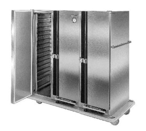 Heated Cabinet, mobile, 3 doors, insulated, removable bottom mounted forced-air heating system, removable slides for (50) 12"x 20" pans, slides on 2-3/4" centers, stainless steel construction, wrap-around bumper, 5" casters (2 swivel, 2 rigid), cUL, UL EPH, CE