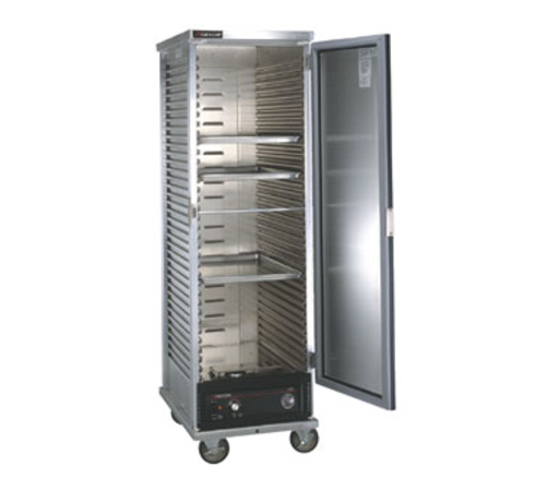 Cabinet, Mobile Heated, non-insulated with bottom-mounted heater assembly, corrugated sides taking 18" x 26" pans, slides on 1-1/2" centers, capacity (34) 18" x 26" pans, (4) 5" casters (2) braked, aluminum exterior & interior, CSA, cCSAus