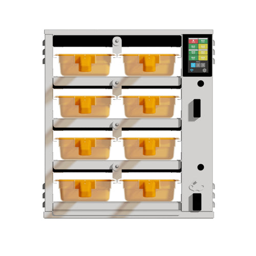 ReadyFlex™ Hot Holding Cabinet, (4) compartment high, (2) compartment wide, 19"W x 14-1/8"D x 16-3/5"H, holds 2.5" deep pans, pans are not included, full color touchscreen control, independent top and bottom zoned heat, individual & interchangeable pan lids, includes 4 solid and 4 vented lids, audible alarm, stainless steel construction, CE, cULus, UL EPH Classified