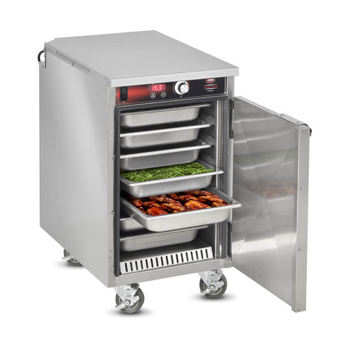 Handy Line Heated Holding Cabinet, mobile, undercounter, 30-3/4”H, (1) compartment, insulated, recessed front controls, adjustable thermostat, removable pair of stainless steel racks with fixed spacing of 2-5/8", accommodates various depth pan sizes & GN containers, stainless steel insulated door with heavy duty die cast hinges, 20 gauge polished exterior with 22 gauge stainless steel interior construction, 3-1/2” all swivel casters, UL, NSF, cULus, UL EPH Classified, CE, IPX4
