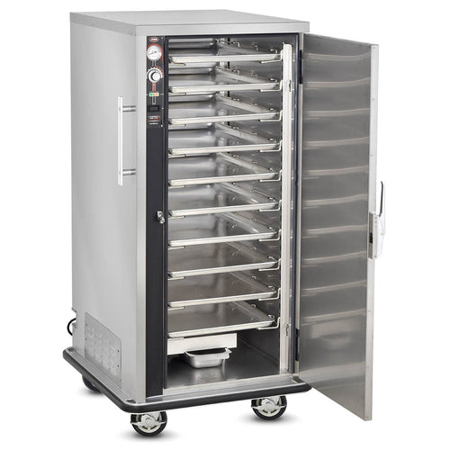 Heated Cabinet, mobile, insulated, humi-temp heat system with eye level controls, (10) pair universal tray slides, 4-1/2" OC, adjustable on 1-1/2" increments, for 18" x 26", 14" x 18", 12" x 20" & GN 1/1, removable slides & uprights, includes push bar handles on each end & full perimeter bumper, stainless steel interior & exterior, 5" casters (2) rigid & (2) swivel, UL, cULus, NSF, CE, IPX4