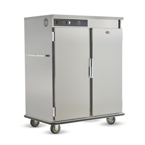 Heated Cabinet, mobile, slim-line, (20) pairs of tray slides, (20) 18" x 26" or (20) 12" x 20" pan capacity, 4-1/2" OC, adjustable to 1-1/2" increments, forced air heating system, adjustable thermostat, recessed controls, insulated (2) flush mounted doors, push bar handles, wraparound bumper, stainless steel construction, 6" casters (2) rigid & (4) swivel with brakes, cULus, UL EPH Classified, CE, IPX4