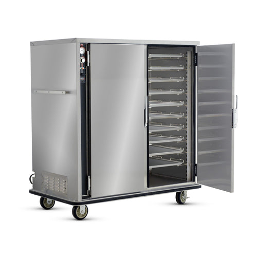 Heated Cabinet, mobile, (20) universal tray slides, (20) 18" x 26" or (40) 12" x 20" pan capacity, 4-1/2" OC, adjustable on 1-1/2" increments, Humi-temp heat & humidity system, adjustable thermostat, individual controls, insulated, removable humidifier pan, (2) flush mounted doors, edgemount door latches, push bar handles, wraparound bumper, stainless steel interior & exterior, 6" casters (2) rigid & (4) swivel, NSF, CE, cULus, UL, IPX4