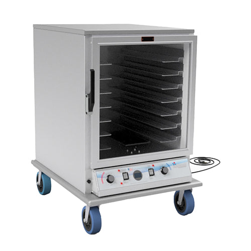 Proof/Hot Stor Cabinet, insulated, mobile, half height, clear polycarbonate door with hinge on right, (7) pair of 5 1/2" universal angle supports, adjustable on 1-1/2" centers, digital thermometer adjustable up to 180°F, independent temperature/humidity controls, removable heat unit, aluminum construction, 6" swivel casters (2 braked), 120v/60/1-ph, 1500 watts, cETLus, ETL-Sanitation (All cabinets that are less than full size are considered custom & non returnable but fully warranted)