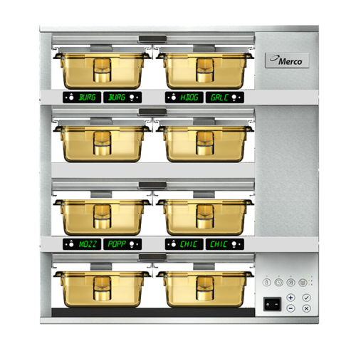 MercoMax™ Heated Holding Cabinet, electric, countertop, (4) shelves, (2) trays per shelf capacity (trays not included), DuoHeat technology with heated convective airflow, digital controls, flush mount timer bars, USB, stainless steel construction, 2163-2737 watts, 10.4-11.9 amps, 208-230v/60/1-ph, NEMA 6-20P, cULus, UL EPH Classified