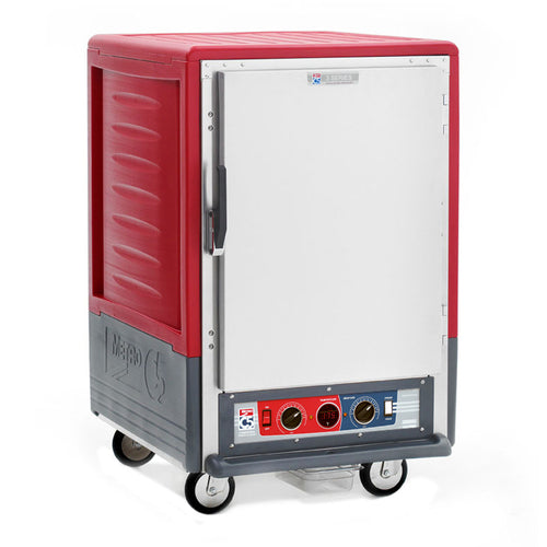 C5™ 3 Series Heated Holding & Proofing Cabinet, with Red Insulation Armour™, mobile, half height, insulated cabinet & door, removable bottom mount control module, thermostat to 200°F, fixed wire slides on 3" centers (8) 18" x 26" or (16) 12" x 20" x 2-1/2" pan capacity, 5" casters (2 with brakes), aluminum, 120v/60/1-ph, 2000 watts, 16.7 amps, NEMA 5-20P, cULus, NSF