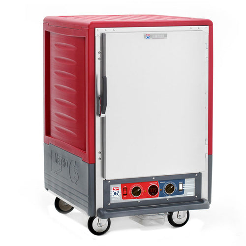 C5™ 3 Series Heated Holding & Proofing Cabinet, with Red Insulation Armour™, mobile, half height, insulated cabinet & door, removable bottom mount control module, thermostat to 200°F, universal wire slides on 3" centers, adjustable on 1-1/2" increments (8) 18" x 26" or (16) 12" x 20" x 2-1/2" pan capacity, 5" casters (2 with brakes), aluminum, 120v/60/1-ph, 2000 watts, 16.7 amps, NEMA 5-20P, cULus, NSF