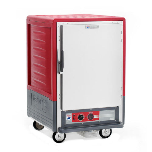C5™ 3 Series Heated Holding Cabinet, with Red Insulation Armour™, mobile, half height, insulated cabinet & door, removable bottom mount control module, thermostat to 200°F, fixed wire slides on 3" centers (8) 18" x 26" or (16) 12" x 20" x 2-1/2" pan capacity, 5" casters (2 with brakes), aluminum, 120v/60/1-ph, 2000 watts, 16.7 amps, NEMA 5-20P, cULus, NSF
