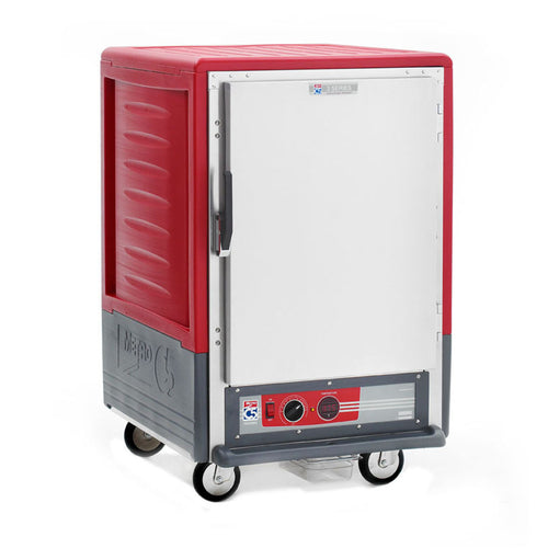 C5™ 3 Series Heated Holding Cabinet, with Red Insulation Armour™, mobile, half height, insulated cabinet & door, removable bottom mount control module, thermostat to 200°F, universal wire slides on 3" centers, adjustable on 1-1/2" increments (8) 18" x 26" or (16) 12" x 20" x 2-1/2" pan capacity, 5" casters (2 with brakes), aluminum, 120v/60/1-ph, 2000 watts, 16.7 amps, NEMA 5-20P, cULus, NSF