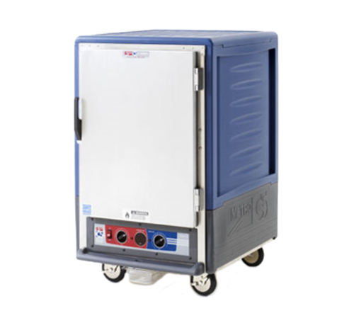 C5™ 3 Series Heated Holding Cabinet, lower wattage, with Blue Insulation Armour™, mobile, half height, insulated cabinet & door, removable bottom mount control module, thermostat to 200°F, lip load slides on 1-1/2" centers (17) 18" x 26" pan capacity, 5" casters (2 with brakes), aluminum, 120v/60/1-ph, 1440 watts, 12 amps, NEMA 5-15P, cULus, NSF