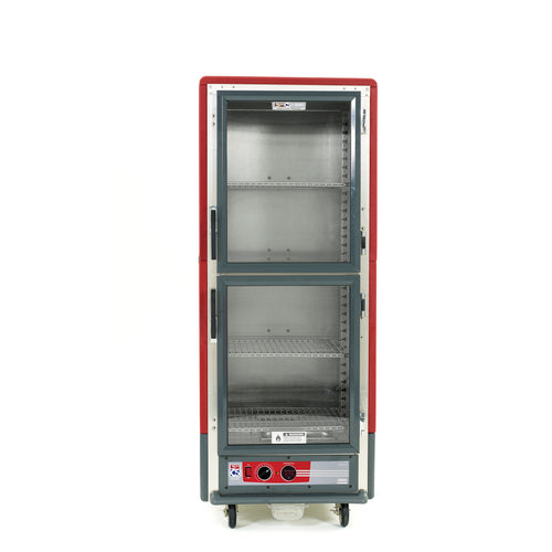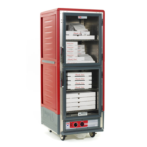 C5™ 3 Series Heated Holding Cabinet, Shelves Only, lower wattage, with Red Insulation Armour™, mobile, full height, insulated, Dutch clear polycarbonate doors, removable bottom mount control module, thermostat to 200°F, 4 adjustable wire shelves, 5" casters (2 with brakes), aluminum, 120v/60/1-ph, 1440 watts, 12 amps, NEMA 5-15P, UL, CUL, NSF