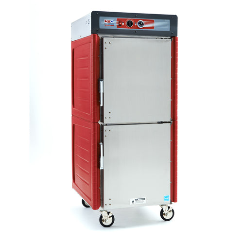 C5™ 4 Series with Insulation Armour™ Plus, mobile heated holding cabinet, full height, insulated Dutch solid doors, top mount controls, thermostat to 200°F, universal wire slides on 3" centers, adjustable on 1-1/2" increments, (16) 18" x 26" or (32) 12" x 20" x 2-1/2" pan capacity, 5" casters, stainless steel, 120V/60/1, 1400 watts, 11.7 amps, NEMA 5-15P, cULus, NSF, ENERGY STAR®