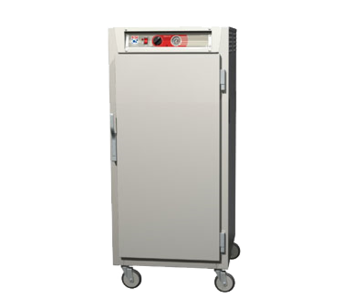 C5™ 6 Series Heated Holding Cabinet, mobile, 3/4 height, insulated, solid doors, top mount controls & analog thermometer, ducted heating system, thermostat 70° to 200°F temp, lip load (27) 18" x 26" pan capacity, 1-1/2" wire slides, 5" casters (2 with brakes), 304 stainless steel, 120v/60/1-ph, 1440 watts, 12 amps, NEMA 5-15P, cULus, NSF, ENERGY STAR®