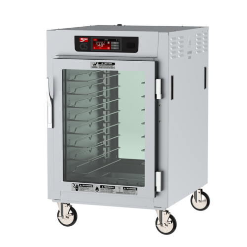 C5™ 8 Series Controlled Temperature Holding Cabinet with 6.8" touch-screen controls, mobile, 1/2 height, pass thru, insulated, tempered double pane glass doors, universal wire slides, (8) 18" x 26" or (16) 12" x 20" x 2-1/2" pan capacity, 3" O.C. (adjustable on 1-1/2" increments), 5" casters, 304 stainless steel, 120v/60/1-ph, 1440 watts, 12 amps, NEMA 5-15P, cULus, NSF, Made in USA