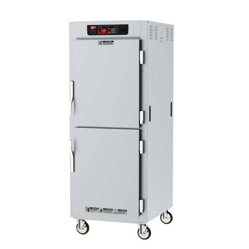 C5™ 8 Series Controlled Temperature Holding Cabinet with 6.8" touch-screen controls, mobile, full height, pass thru, insulated, solid dutch doors, lip load, (17) 18" x 26" pan capacity, 3" O.C., 5" casters, 304 stainless steel, 120v/60/1-ph, 2000 watts, 16.7 amps, NEMA 5-20P, cULus, NSF, Made in USA