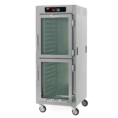 C5™ 8 Series Controlled Temperature Holding Cabinet with 6.8" touch-screen controls, mobile, full height, pass thru, insulated, (1) dutch double pane tempered glass & (1) dutch solid doors, lip load, (17) 18" x 26" pan capacity, 3" O.C., 5" casters, 304 stainless steel, 120v/60/1-ph, 1440 watts, 12 amps, NEMA 5-15P, cULus, NSF, Made in USA