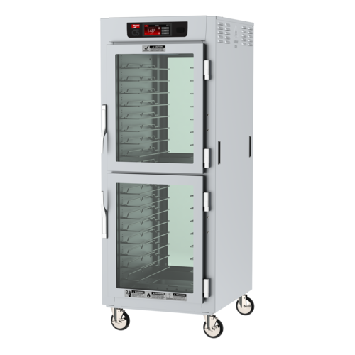 C5™ 8 Series Controlled Temperature Holding Cabinet with 6.8" touch-screen controls, mobile, full height, pass thru, insulated, dutch double pane tempered glass doors, universal wire slides, (17) 18" x 26" or (34) 12" x 20" x 2-1/2" pan capacity, 3" O.C. (adjustable on 1-1/2" increments), 5" casters, 304 stainless steel, 120v/60/1-ph, 1440 watts, 12 amps, NEMA 5-15P, cULus, NSF, Made in USA