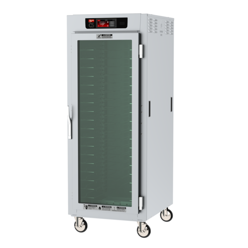 C5™ 8 Series Controlled Temperature Holding Cabinet with 6.8" touch-screen controls, mobile, full height, pass thru, insulated, (1) tempered double pane glass & (1) solid doors, universal wire slides, (18) 18" x 26" or (36) 12" x 20" x 2-1/2" pan capacity, 3" O.C. (adjustable on 1-1/2" increments), 5" casters, 304 stainless steel, 120v/60/1-ph, 1440 watts, 12 amps, NEMA 5-15P, cULus, NSF, Made in USA