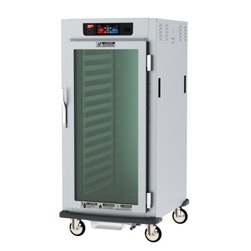 C5™ 9 Series Controlled Humidity Heated Holding and Proofing Cabinet with 6.8" touch-screen controls, mobile, 3/4 height, clear double panel tempered glass door, lip load slides, capacity (29) 18" x 26" pans, 1-1/2" O.C., stainless steel, 5" casters, polymer bumper & drip trough combination, 120v/60/1-ph, 2000 watts, 16.7 amps, NEMA 5-20P, cULus, NSF, Made in USA