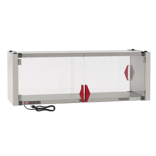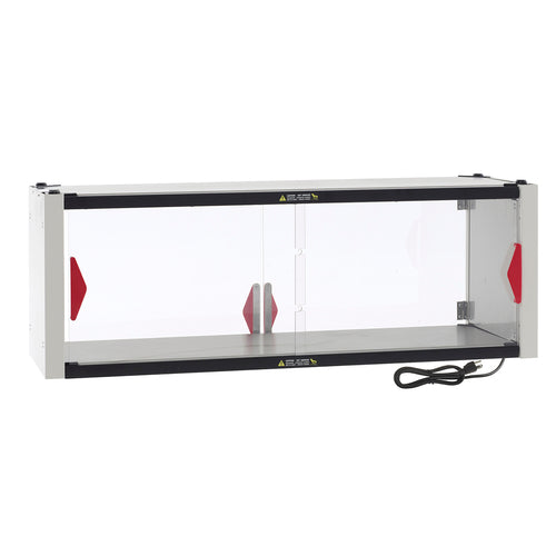 Super Erecta® Hot Enclosed Heated Shelf Kit, includes: (1) 48"W x 14"D heated shelf, with powdercoated side panels, clear polycarbonate sliding front doors, clear hinged rear doors, adjustable thermostat to 200°F max temperature, (1) non-heated, stainless steel top shelf, (4) split sleeves, 120v/60/1-ph, 400 watts, 3.4 amps, cord & NEMA 5-15P, NSF, cULus, Made in USA