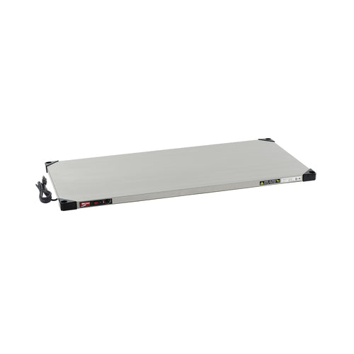 Super Erecta® Hot Heated Shelf, 48"W x 24"D, adjustable thermostat to 200°F max temperature, 304 stainless steel construction, includes: (4) split sleeves, (4) 3" polymer feet for countertop use, 120v/60/1-ph, 600 watts, 5.0 amps, cord & NEMA 5-15P, NSF, cULus, Made in USA