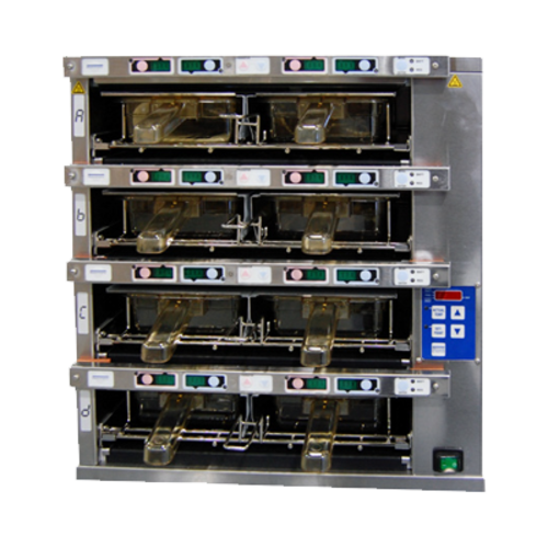 MenuTrak Dedicated Holding Bin, countertop, pass-thru design, (4) shelf, (8) 1/3 size dual handle pans with covers (included), solid state digital controls, removable pan rack, storage for 6 different menus, MenuTrack food supervisory system, on/off switch, (6) independently controlled heaters, stainless steel & aluminum construction, 1600 watts, 13.3 amps, 120v/60/1-ph, NEMA 5-15P, UL, cUL, CE