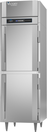 UltraSpec™ Series Heated Cabinet, Reach-in, one-section, 21.5 cu. ft. capacity, (2) half height solid hinged doors, (3) silver freeze (chrome-style) shelves, standard depth cabinet, exterior digital thermometer, cylinder locks, stainless steel exterior, aluminum interior, UL, UL EPH Classified, MADE IN USA