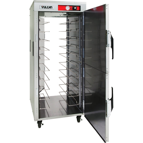 Holding/Transport Cabinet, Pass-thru, Mobile, capacity (18) 18" x 26" x 1" or (36) 12" x 20" x 2-1/2" pans, forced air blower, side mounted push handles, recessed control panel, analog thermometer ambient to 190° F, includes (15) pair of universal tray slides adjustable 1-1/2" OC, 20 gauge stainless steel interior & exterior, 5" casters, cULus, UL EPH Classified