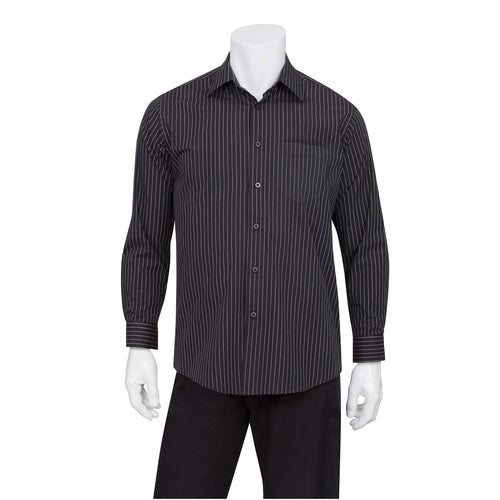 Men's Onyx Dress Shirt, long sleeves, adjustable cuffs, built-in collar stays, double back yoke, left chest pocket, classic fit, 65/35 poly/cotton, pinstripe, small