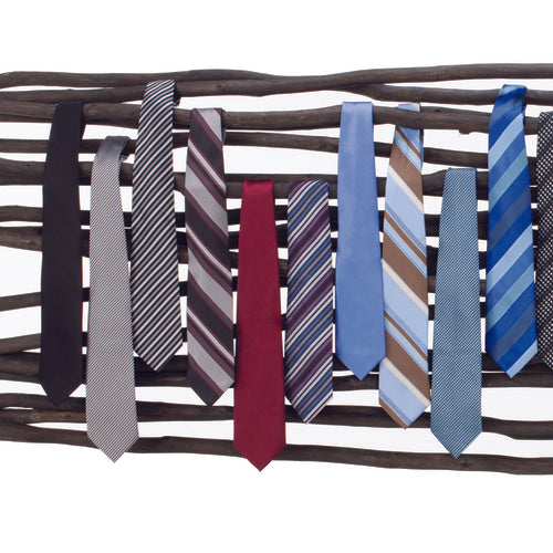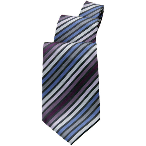 Dress Tie, multi-stripe pattern, dry clean only, 100% polyester, blue/purple