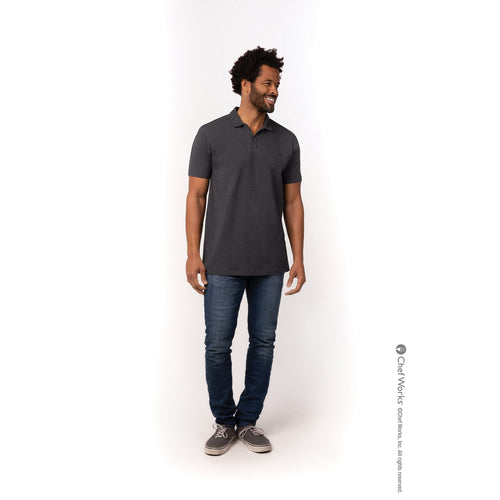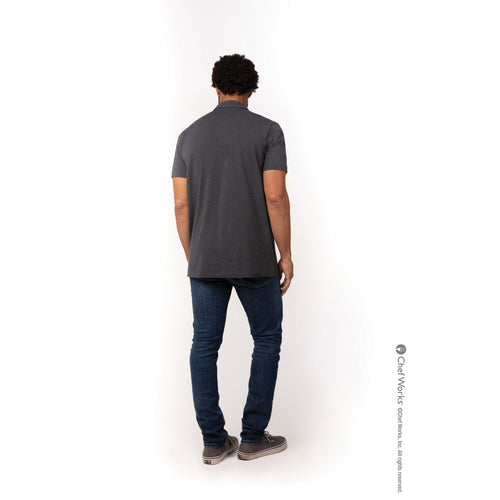 Men's Definity Shirt, short sleeves, v-neck polo, straight hem, double needle stitching, 57/38/5 cotton/poly, elastane blend, charcoal, 3XL