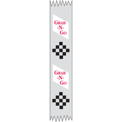 Merchandising Food Tape, "Grab-N-Go", 1" x 500' roll, tamper-resistant seal, plastic, red/black/white imprinted, clear background