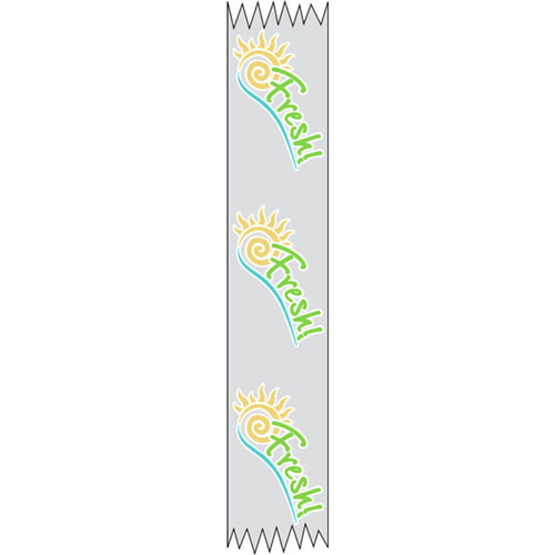 Merchandising Food Tape, "Fresh" with sun design, 1" x 500' roll, tamper-resistant seal, plastic, yellow/green/blue imprinted, clear background